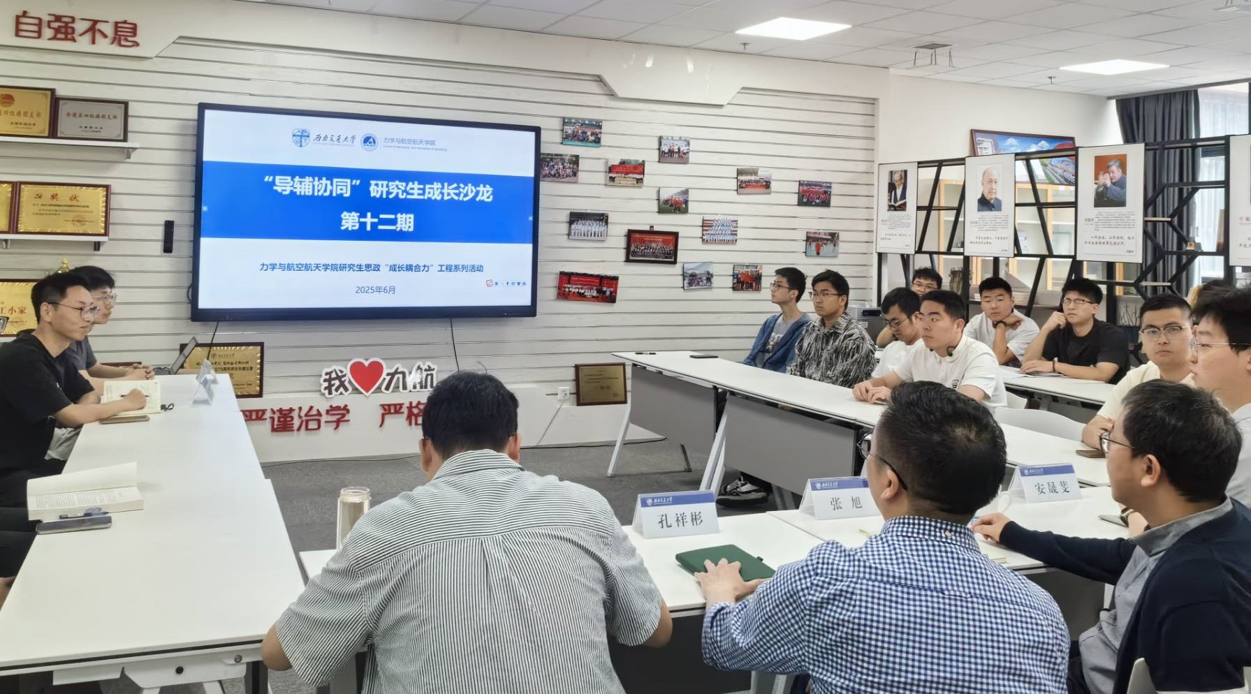 2025年6月5日上午,麻豆做爱 研究生思政“成长耦合力”工程系列活动之“导辅协同”研究生成长沙龙第十二期在犀浦校区X30278举行。学院党委副书记孔祥彬、研究生导师张旭教授、苗鸿臣教授及众多研究生参与本次沙龙。主讲人为学院2022级博士生熊宇凯和2024级博士生朱清锋。沙龙由研究生辅导员安晟斐主持。