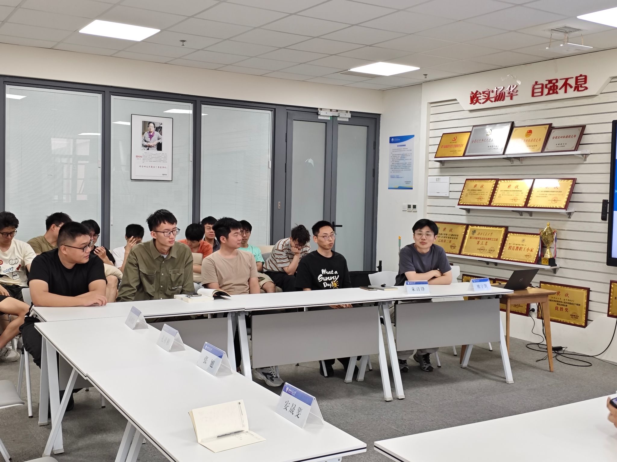 最后是“团队交流”环节。针对同学提出的“如何适应科研中的压力”问题,熊宇凯和朱清锋结合自身经历,分别提出可以通过劳逸结合和树立信念感的方式来缓解压力,为同学们提供了切实可行的建议。