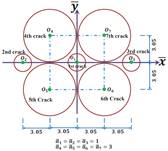 图3七裂纹分布示意图(a);裂纹1周围的应力强度因子(b);