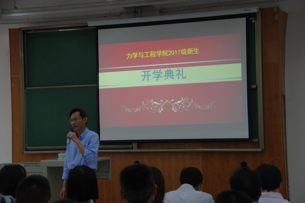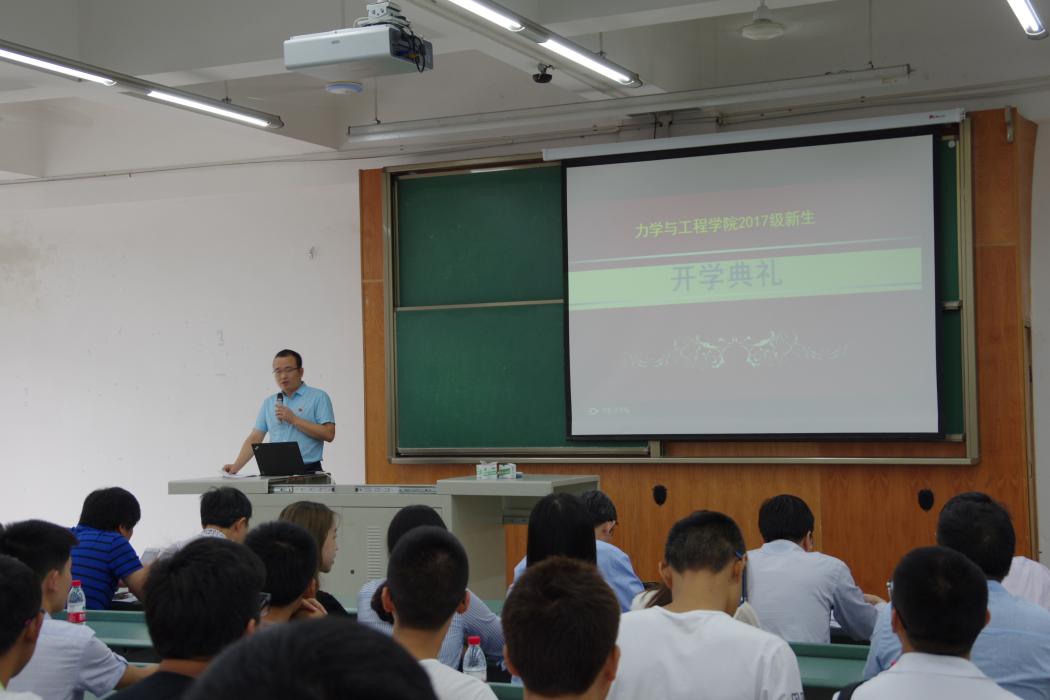 9月3日上午,力学与工程学院2017级新生开学典礼在X4350隆重举行。出席本次开学典礼的有2017级研究生、本科生、新生家长、校党委常委沈火明教授、院长康国政教授、党委金建明书记、副院长李映辉教授、副院长唐怀平副教授、副院长蒋晗教授、工会主席刘菲教授、院长助理高芳清副教授、阚前华副教授、工程力学系系主任张娟副教授、飞行器设计与工程系系主任鲁丽副教授、本科生教务员景继敏老师、本科生班导师史智副教授、包陈副教授、学院党委秘书、研究生辅导员刘青老师、院团委书记、本科生辅导员杨婧老师、本科生辅导员张英蓉老师。典礼由学院党委张军琪副书记主持。
