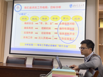然后,力学学院杨婧老师介绍了力学学院深入学生联系学生“三因工作法”实施方案,具体介绍了力学学工组落实学校要求,通过“因事沟通”、“因时沟通”、“因势沟通”三个方面制定的系统、具体的深入学生、联系学生工作方法。