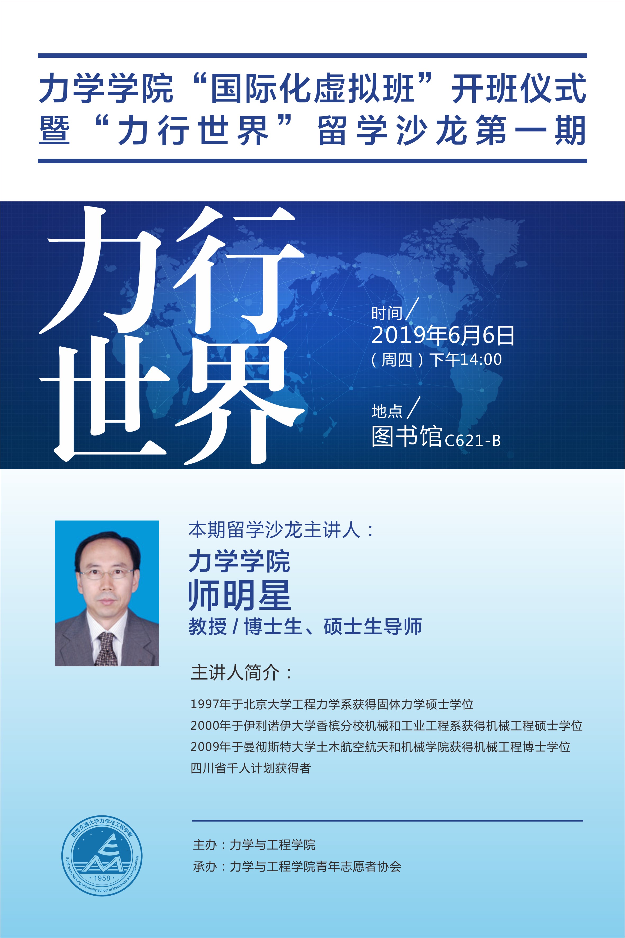 高校国际化是拓宽大学生国际视野、提高学生综合竞争能力的重要途径,为加大对留学深造的认知度, 力学与工程学院组建了“国际化虚拟班”,并将每月定期开展“力行世界”留学沙龙活动,为有意向、有能力的同学提供更加精准、有力的指导和帮助。