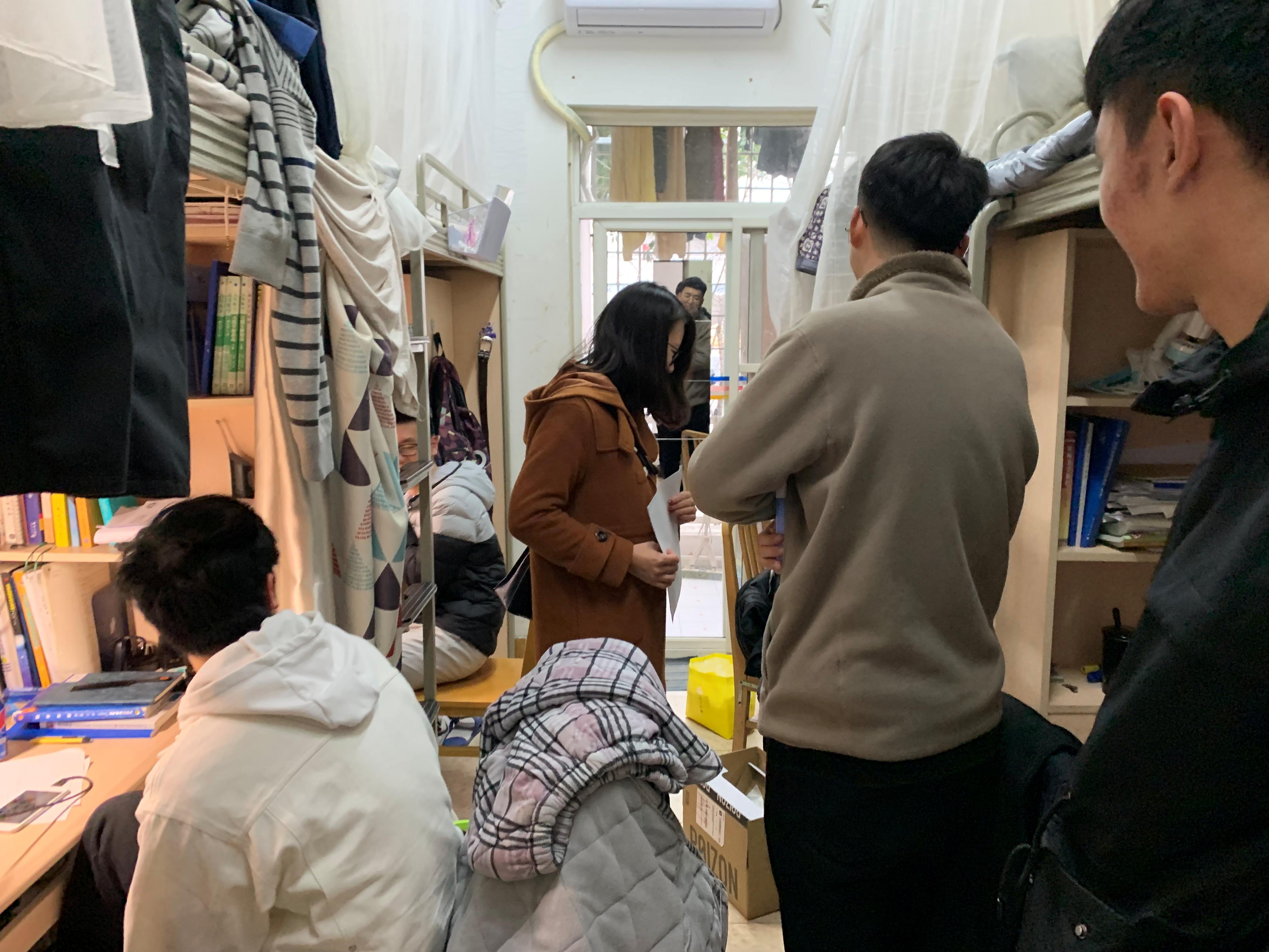 临近期末,为进一步加强学生宿舍园区安全工作,11月28日,在学院党委书记栗民老师带领下,本科生辅导员老师杨婧、张容华、胡持、向金兰、周子涵及研究生辅导员老师张英蓉对学院学生宿舍进行了安全检查,特别对宿舍卫生、存放使用违章电器、乱接空调专用电源、宿舍内各充电设备的安全使用等进行了重点检查。