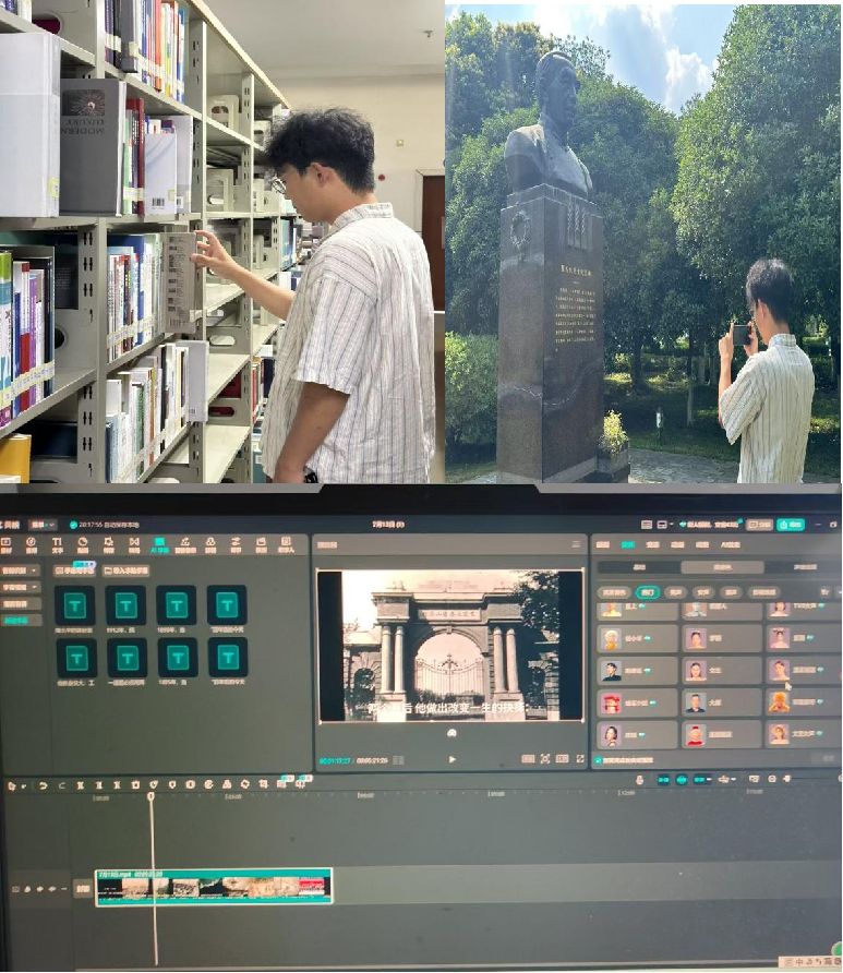线上校史馆寻找罗忠忱教授的生平事迹;在学校图书馆寻找有关罗教授的书籍,以及对网上检索到的罗教授相关事迹进行验证筛选等。此外,团队成员还通过角色扮演的方式,复刻了有关罗忠忱教授的经典场景,如“罗教授的铁律——一道题必须用两种方法验算”场景;“小数点错一位则整道题都是零分”场景等。