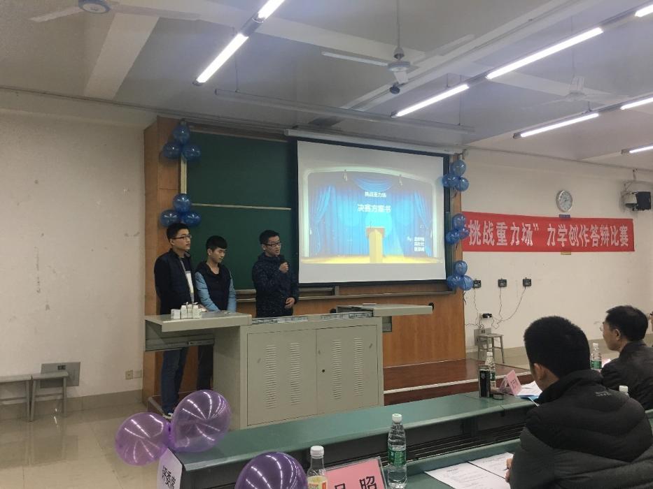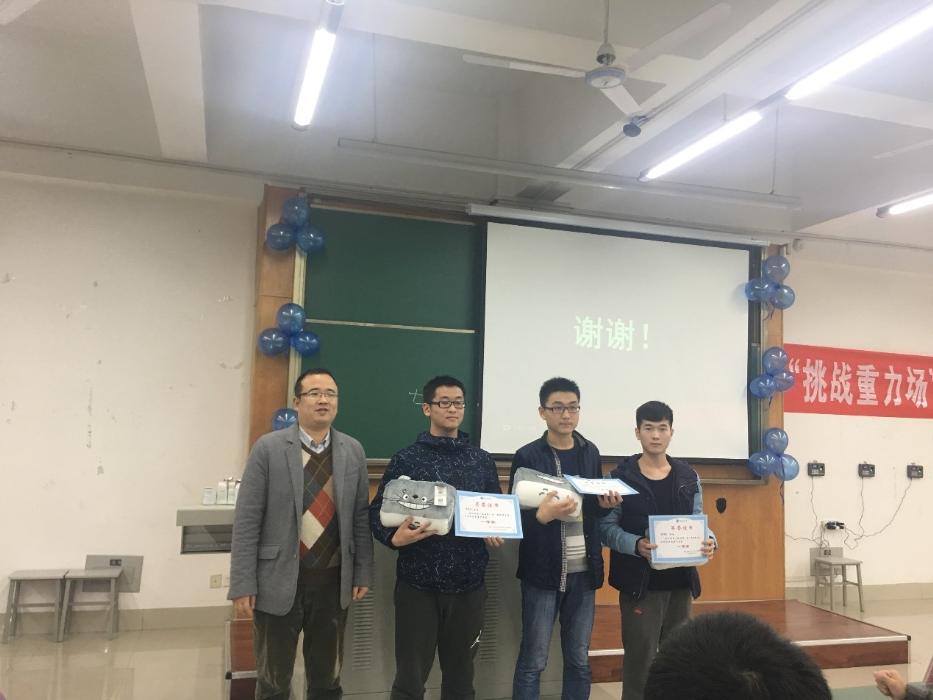 九支队伍答辩结束后是由高芳清副教授来做出点评,他高度赞扬了同学们的想象能力和动手能力,同时也指出了一些组的不足。最后获得挑战重力场冠军的是第15组的禹壮壮,路桦铭,谢源威三位同学。全场响起热烈的掌声。