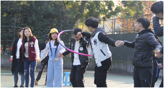 11月的成都,寒风嗖嗖的吹着。但是,同学们看上去却没有一丝凉意,每个人都在赛场上或奋力拼搏或加油打气,呈现出一片热闹的景象。在“七人八足20米跑”的赛场上,同学们跃跃欲试,比赛的哨声吹响时,口号声在操场上跌宕起伏;操场那边“筷子夹乒乓球冲关”更是火爆极了,笑声欢呼声不断,男女同学一齐配合,越过阻碍,奔向胜利;在“呼啦圈过山车”那里,参赛队员们小心翼翼,紧张刺激地完成一次又一次的合作;在拉拉队的欢呼雀跃下,“企鹅漫步”的队员们不甘示弱,通过层层关卡,向着目标跨越……经过一系列的激烈角逐,最终由第一组夺得了冠军,第二组获得亚军,第五组获得季军。