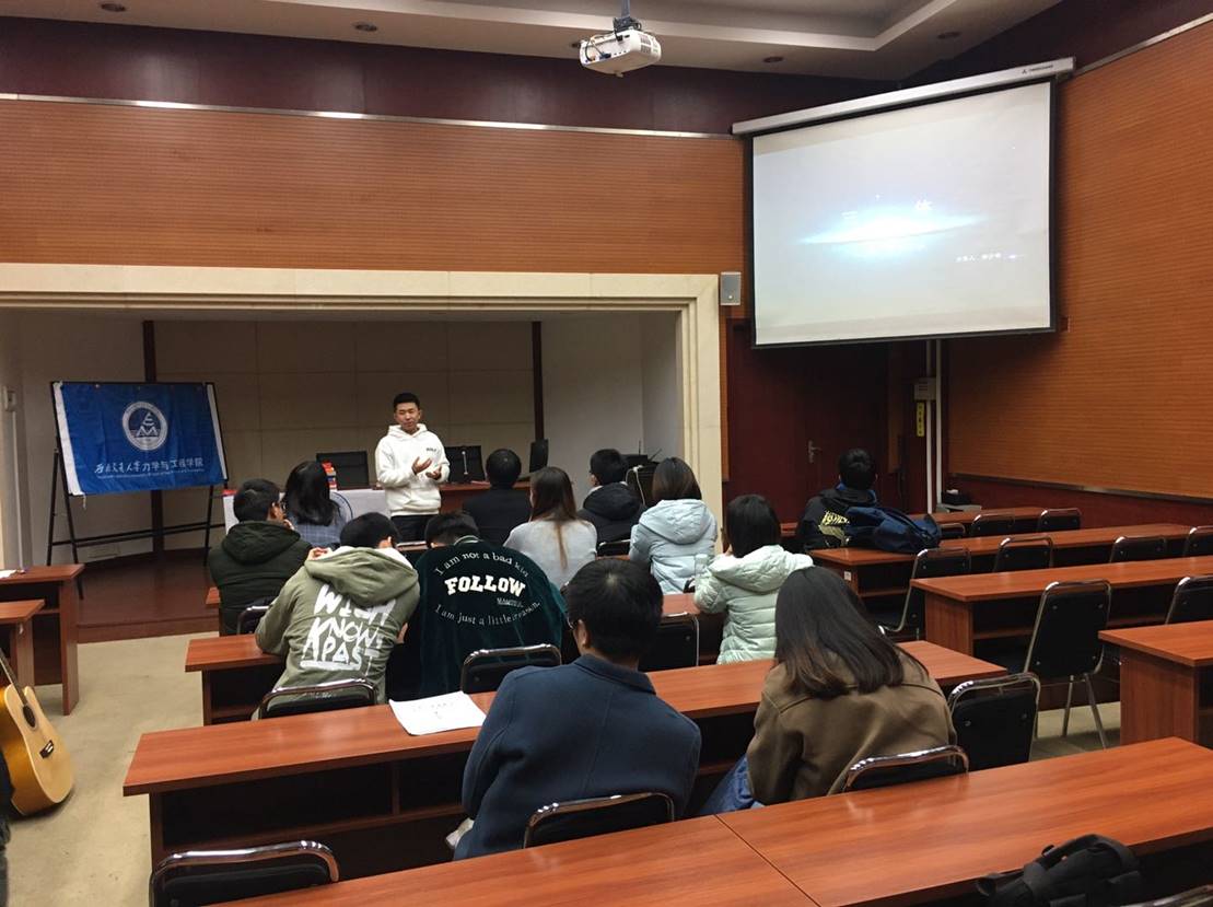 活动中,共有六组同学与大家分享了他们推荐的作品。首先是上官志浩同学为大家分享了太宰治的半自传体小说《人间失格》,他从作者简介入手,透过小说主角的人生遭遇,生动的向我们展示了一个人如何一步步丧失“人”的资格,并从格局、共鸣、批判、自我提升四点分享了自己的读后感,提醒我们树立正确的世界观。接下来黄正同学跟大家分享了余华的著作《活着》,通过对故事情节的描述结合自己的现实经历和感触告诉大家一个人生哲理:无论命运多么的无常,生活有多么的坎坷,请不要对这个世界绝望,活着就是希望,要学会珍惜,去扛起生命赋予我们的责任。随后李少奇同学给我们带来了科幻巨作《三体》,让我们感受到地球文明与三体文明的碰撞与交流,不禁让我们感慨作者天马星空的想象力和巧妙的构思。在交流会的中场,陈良杰同学为大家带来了他的吉他民谣,轻松而又深沉的歌声把这次活动推向了高潮。