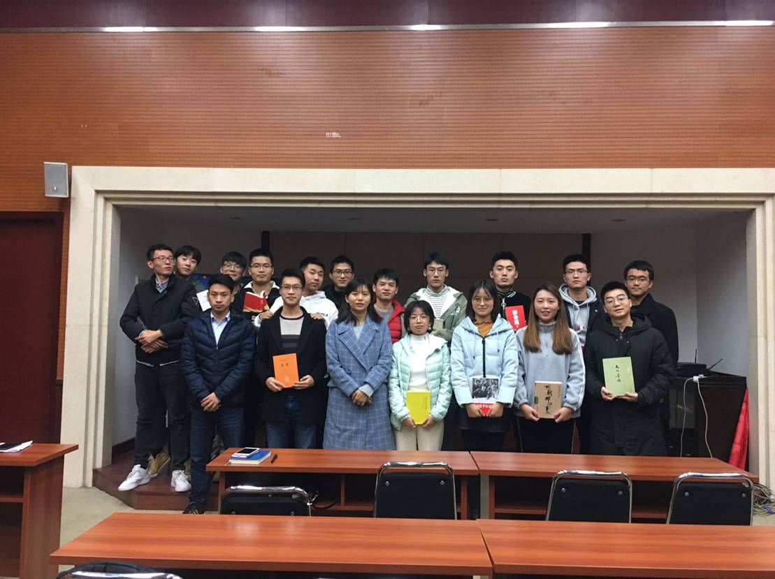 在活动的后半场,郝港桐同学分享了她对《麦田里的守望者》的感触,成长的过程中面对世俗的纷纷扰扰和成人的虚伪,我们要坚守本心,守住内心的那一方净土,同时谨记少年的我们无所畏惧。接下来刘少杰同学为我们讲述了一部国学著作《楚辞》,重点诠释了《离骚》、《湘君》、《湘夫人》三篇文章并朗诵了其中的部分片段,让我们感受到浓浓的楚风魅力,彷佛回到了大楚盛世。最后王泓之同学分享了《明朝那些事》,以史为镜,可以知兴替,通过历史的往事,我们要汲取前人的经验,取长补短,在成功的路上少走弯路。在分享过程中,每一部著作都能引人深思、耐人寻味。会后,张英蓉老师对此次读书会作了总结,希望每位同学都能从读书中获得乐趣,体会生命的价值,并对活动形式提出了改进和建议。最后对参赛选手赠送相应的书籍与精美书签,并合影留念。