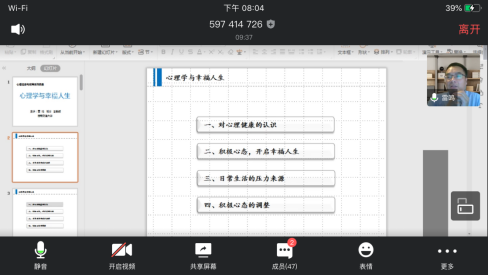 雷鸣老师从对心理健康的认识、积极心态,开启幸福人生、日常生活的压力来源、积极心态的调整四个方面来仔细阐述了心理学与幸福人生之间的关系。