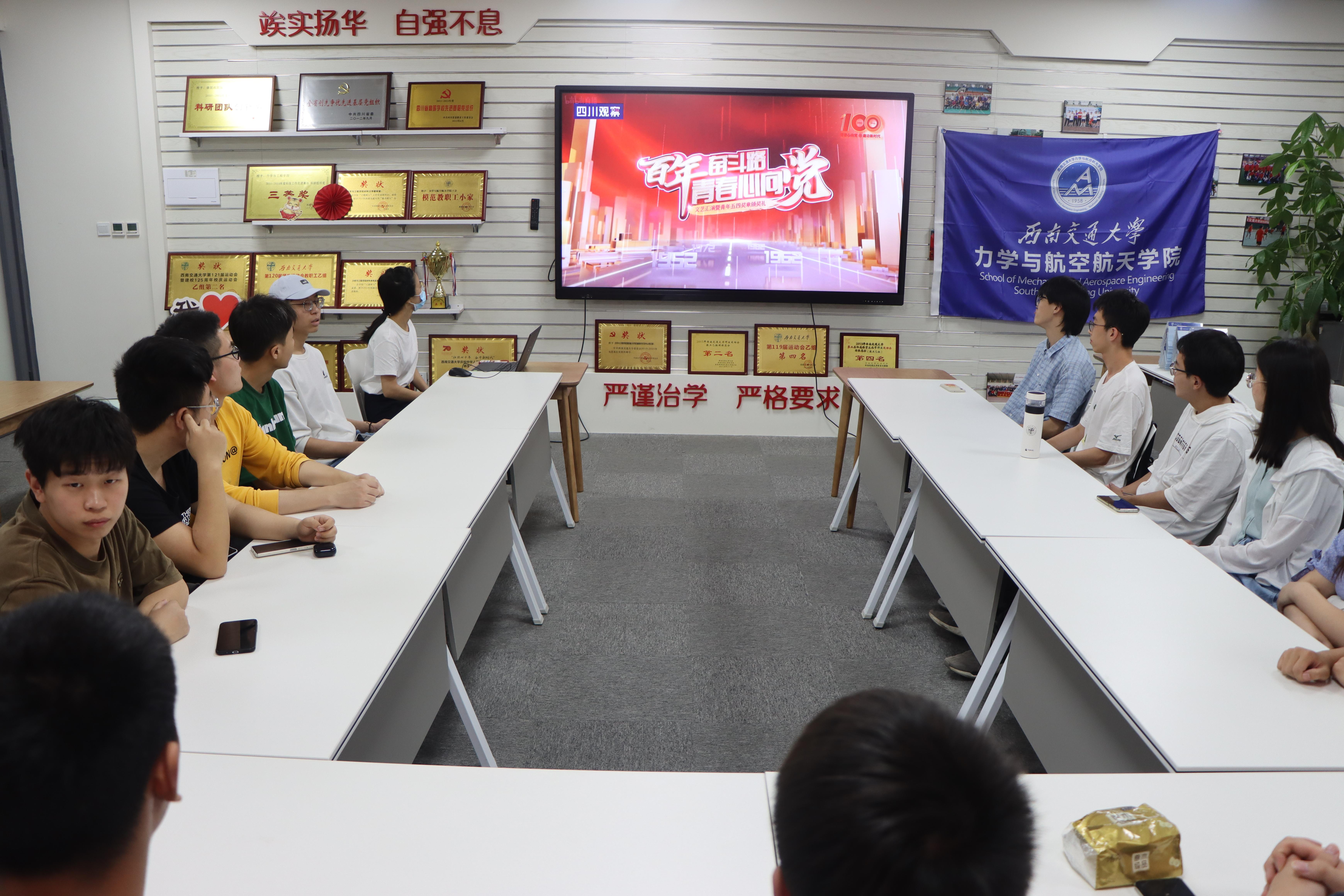 5月5日,组织学院学生观看由共青团四川省委主办、四川广播电视台承办的《“百年奋斗路 ·青春心向党”文艺汇演暨青年五四奖章颁奖礼》直播。