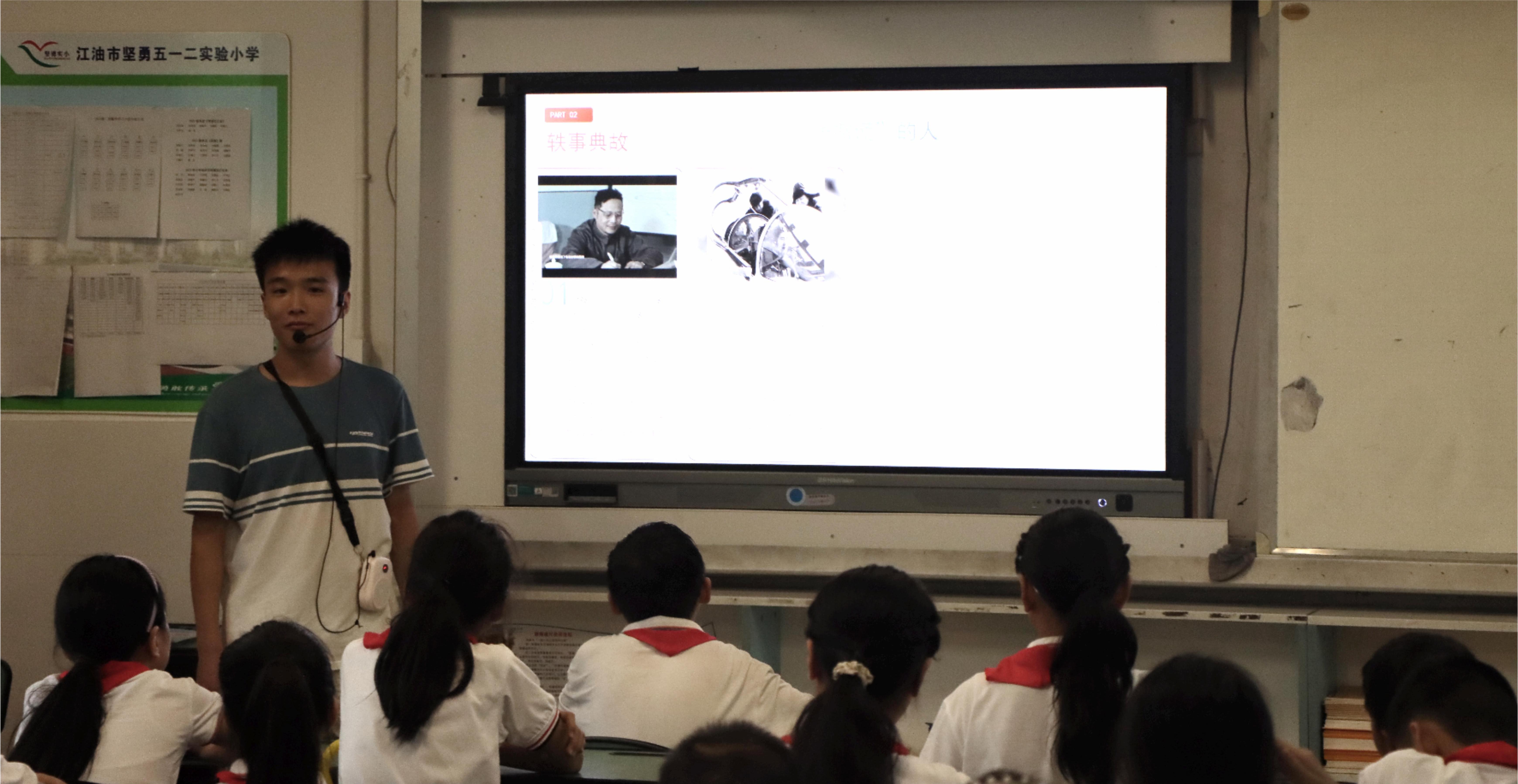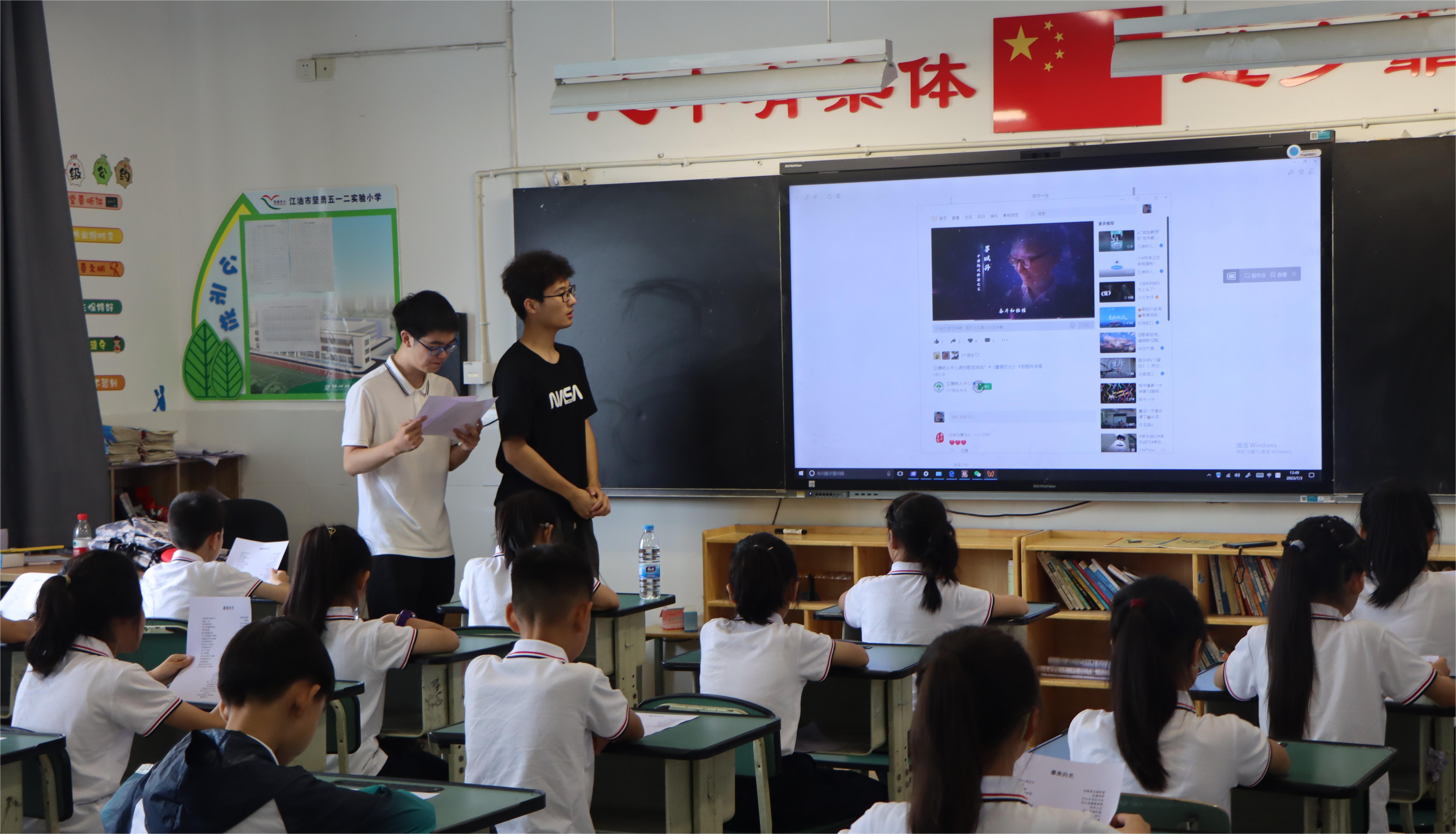 随后,实践队成员以钱学森、茅以升、竺可桢、袁隆平、屠呦呦、黄旭华、顾诵芬七位科学家的生平事迹为主线,用娓娓道来的方式诠释七位科学家在不同时代背景下所实现的成就,以及为国家发展所做出的贡献,浓浓的爱国情怀贯穿其中。孩子们被科学家身上不怕吃苦、勇于探索、赤诚报国的精神所感染,纷纷表示自己以后也要把这些精神体现在学习和生活中,在平凡的生活中做出不平凡的事。