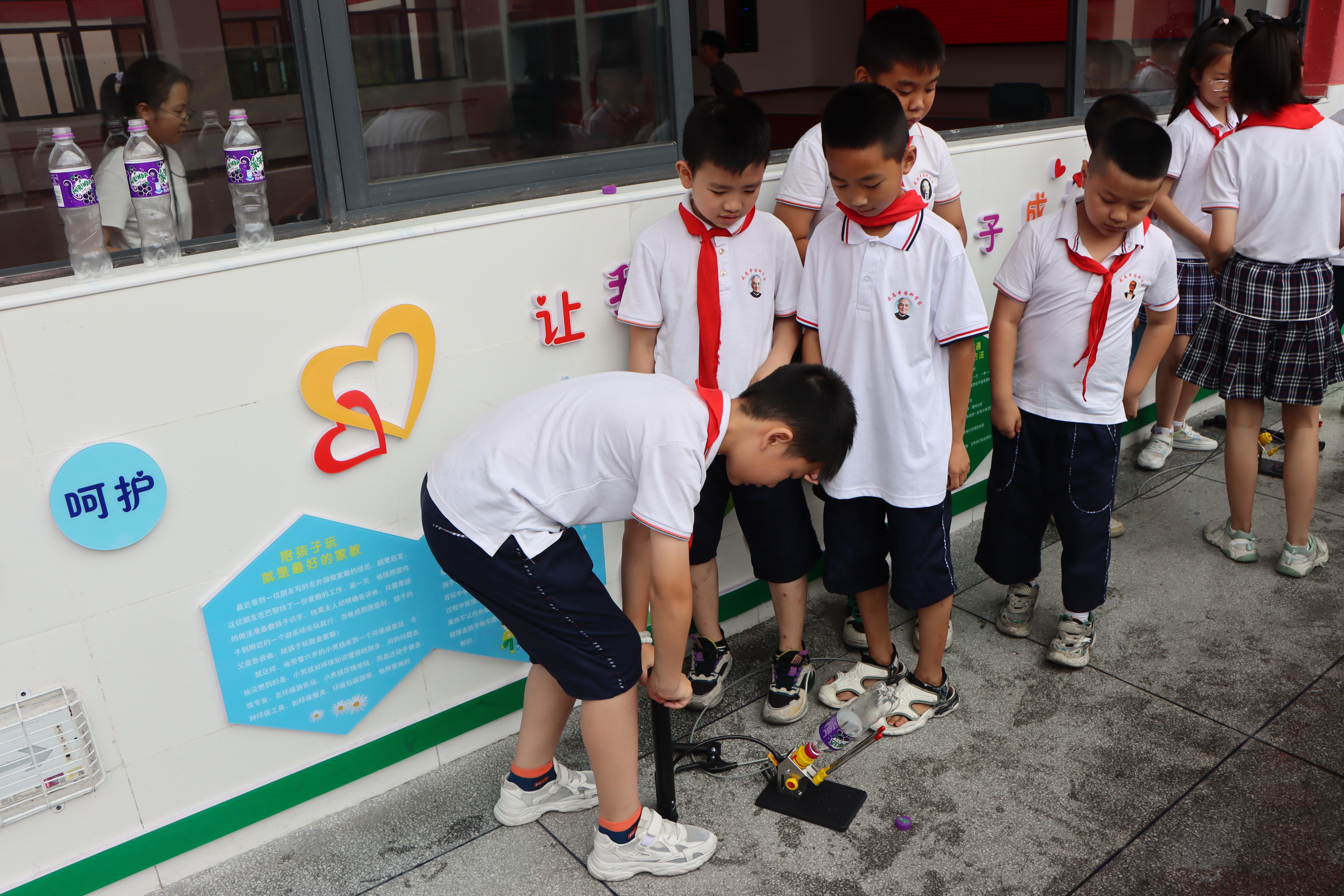 最后,以“水火箭”和“纸板爬山”为代表的科学小实验将整个活动推向了高潮。孩子们自己动手制作、测试、改进,体验了科学探究的过程,当看到自己小组的作品在实践队队员们的指导下成功发射时,尖叫声、欢笑声不绝于耳。孩子们雀跃的身影和欢笑的脸庞淋漓尽致地体现了他们对科学的热爱。