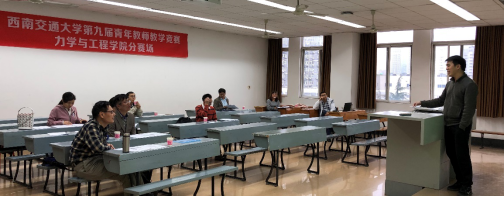 参赛教师们或是激情洋溢、慷慨陈词,或是娟娟细流、娓娓道来,把一个个深奥的力学问题描述得出神入化,浅显易懂。比赛过程充分展现了力学学院年青教师们的课堂教学风采。评委从参赛选手的教学设计(现场提交纸质版)、课堂教学和教学反思三方面,进行评分。成绩优异的老师进入学校复赛。