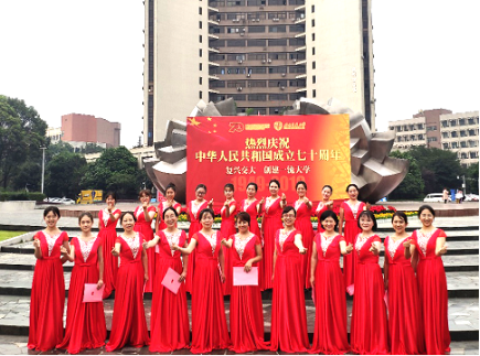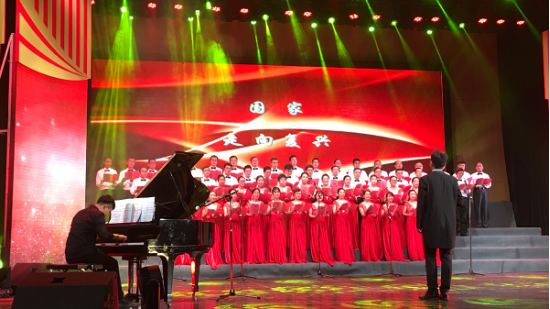 党委书记栗民、院长康国政率全院教职工激情献歌,共祝国庆。