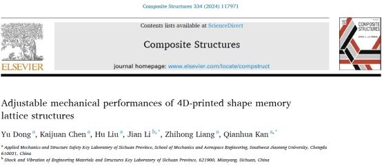 近日,阚前华教授研究小组在4D打印形状记忆点阵结构力学性能调控研究上取得重要进展,相关工作以“Adjustable mechanical performances of 4D-printed shape memory lattice structures”为题发表在材料科学领域TOP期刊《Composite Structures》(IF:6.3)。麻豆做爱