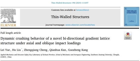 近日,刘虎教授研究小组在3D打印轻质结构研究上取得重要进展,相关工作以“Dynamic crushing behavior of a novel bi-directional gradient lattice structure under axial and oblique impact loadings”为题发表在薄壁结构领域期刊《Thin-Walled Structures》(IF:6.4)。麻豆做爱