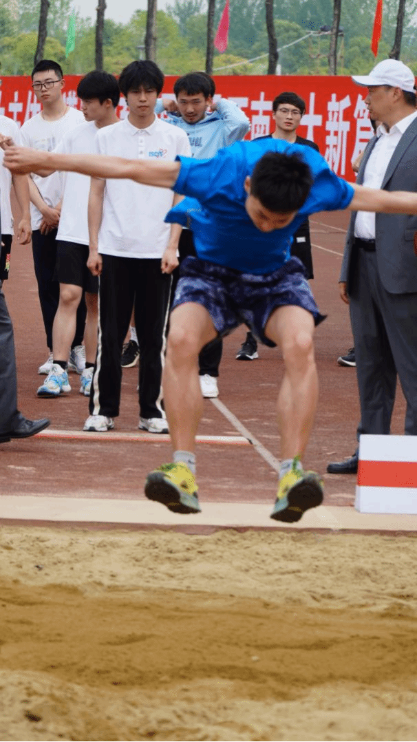 选手团结协作,以57.65秒的成绩荣获季军,他们的默契配合和运动精神令人赞叹。肖薛冰同学在男子立定跳远中爆发强力,以2.89m的成绩,荣获比赛第四名。