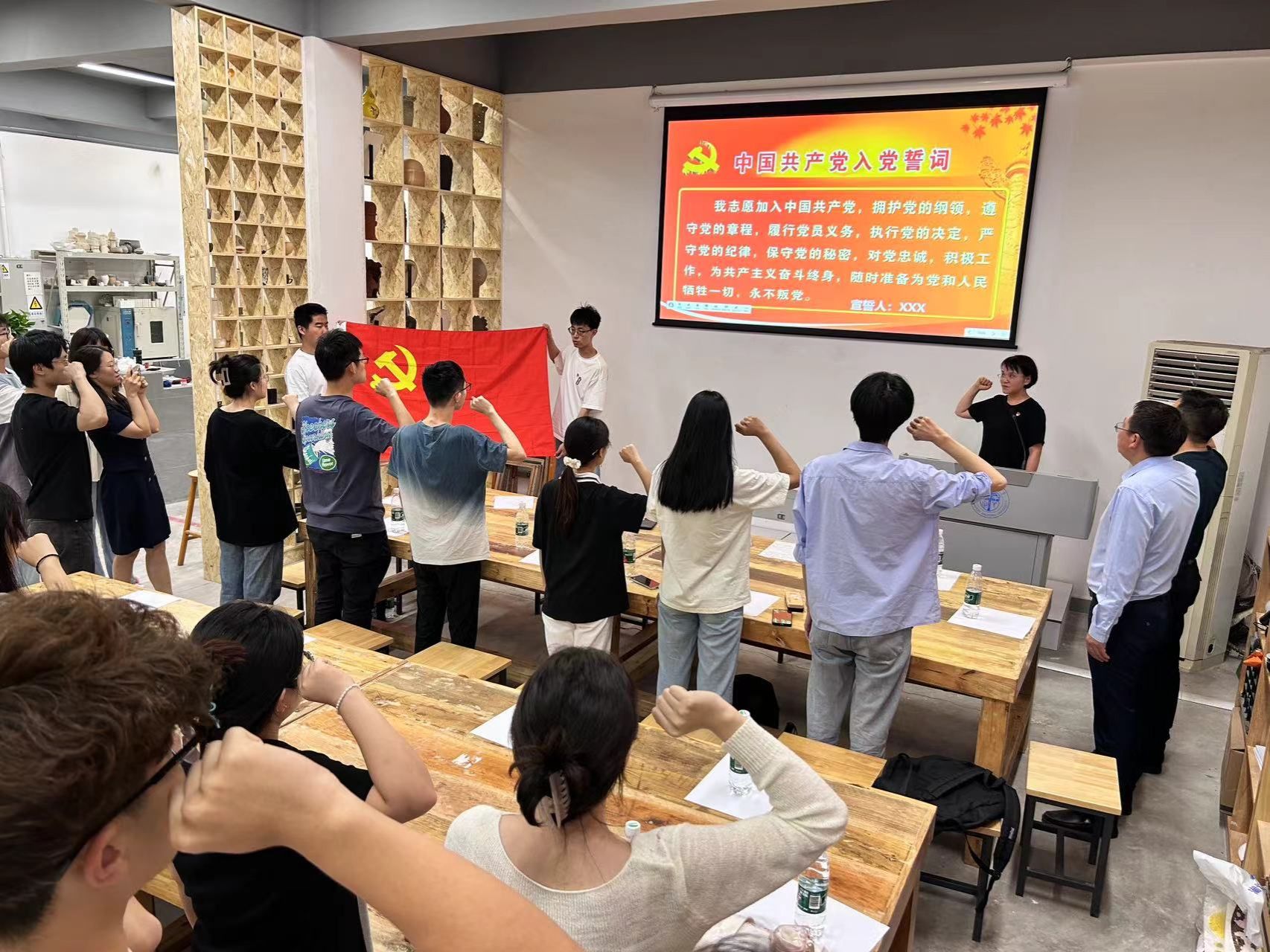 座谈会后,栗民书记带领全体党员重温了入党誓词。