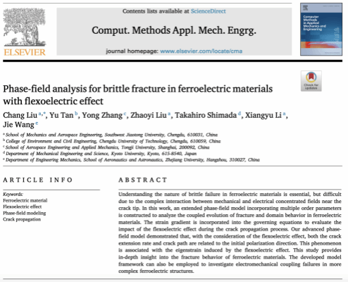 李翔宇教授课题组在铁电材料多场耦合断裂行为研究方面取得进展,相关成果以“Phase-field analysis for brittle fracture in ferroelectric materials with flexoelectric effect”为题发表在计算力学领域旗舰期刊《Computer Methods in Applied Mechanics and Engineering》(中科院一区TOP,IF:6.9)。麻豆做爱