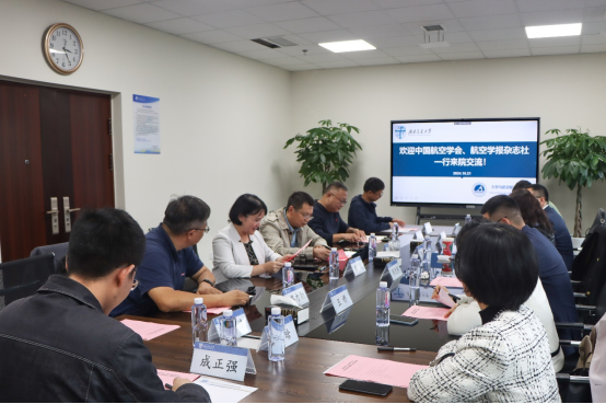 党委书记栗民主持。首先,蔡斐社长介绍了来访的嘉宾,包括中国航空学会执行秘书长周竞赛、组织部业务主管杨德林,以及航空学报杂志社的《CJA》编辑部副主任王娇、《航空学报》与《CJA》学术编辑张晗和李世秋。
