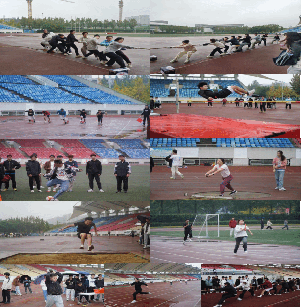 随后,运动会正式开始。首先教师代表们展开了激烈的拔河对决。教师拔河比赛结束后,学生项目赛正式开始。学生们陆续开展了男子跳高、跳远、男子100米、男子800米、女子100米、女子400米、4×100米接力、实心球、铅球等单人项目,以及乒乓球接力、趣味羽毛球、趣味篮球、足球射门拔河等集体项目。