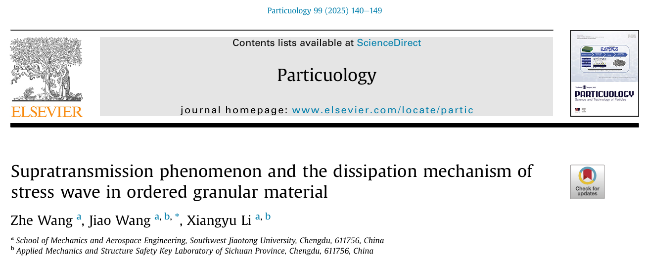 研究生王喆在颗粒材料能量超传递及应力波传播行为方面取得研究进展,相关成果以“Supratransmission phenomenon and the dissipation mechanism of stress wave in ordered granular material”为题发表在颗粒学领域期刊《Particuology》上。麻豆做爱