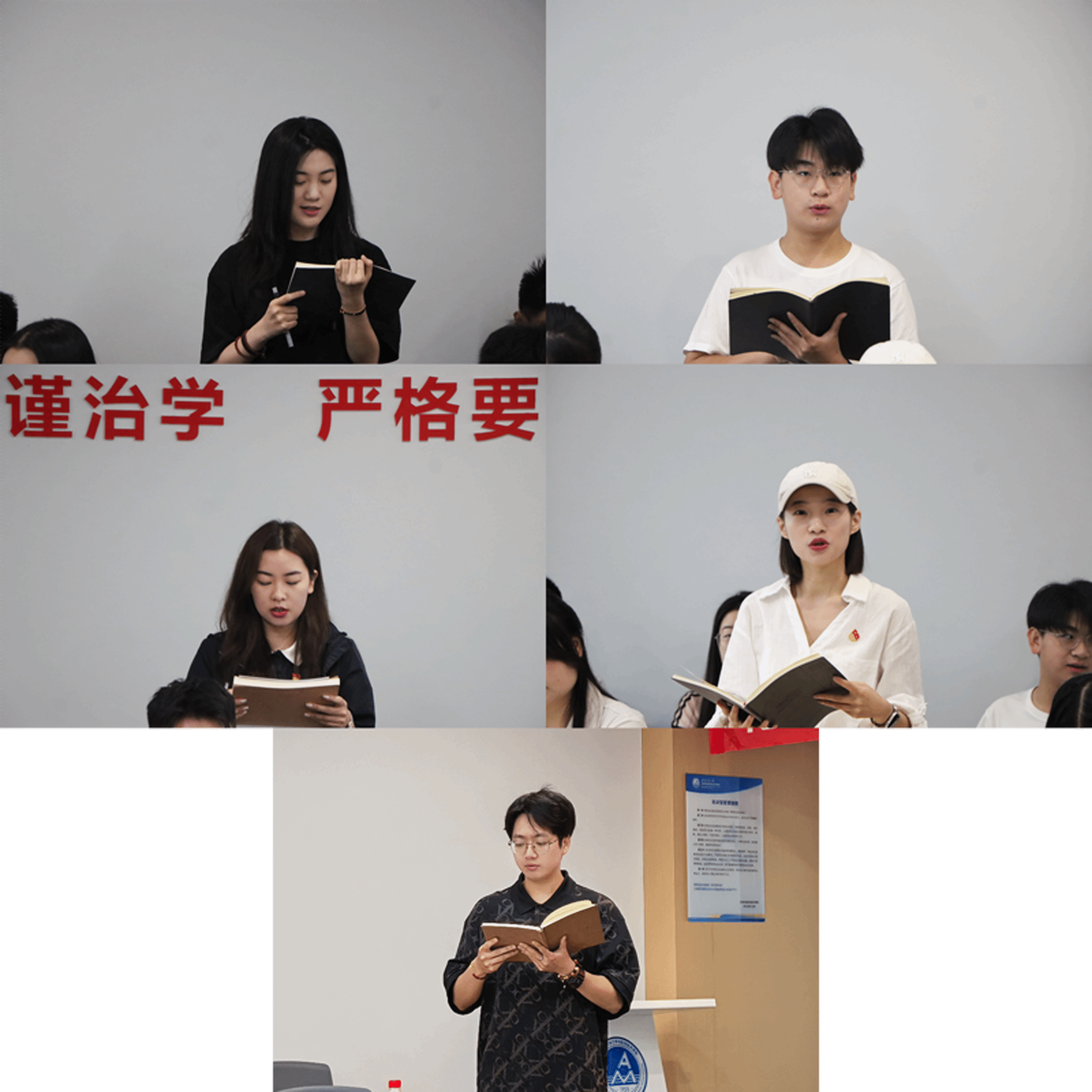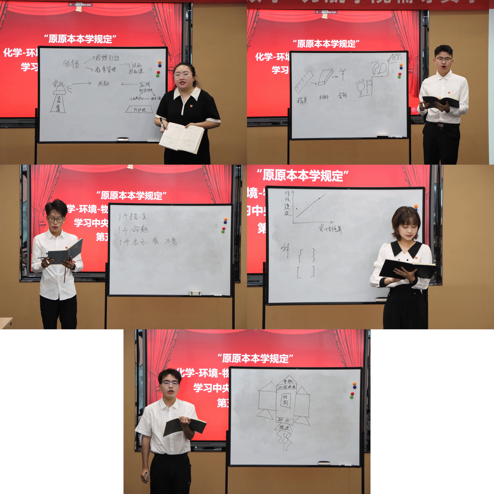 的唐珂五位辅导员依次登台,以扎实的理论功底、丰富的案例分享和生动的表达展开领学。他们结合自身工作经验,深入分析中央八项规定精神第八章和第九章重点思想内容,展现出新时代高校辅导员良好的专业素养和精神风貌。