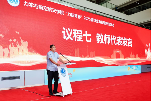 接下来,学院院长李翔宇教授讲话。他代表学院全体师生向2025届毕业生们表示热烈的祝贺,对同学们和学院取得的成绩表示高度赞扬,并提出三点殷切希望:第一,要仰望星空,胸怀大志,做有梦想的力航学子;第二,要砥砺奋发,坚韧不拔,做肯奋斗的力航学子;第三,要饮水思源,心怀感恩,做懂感恩的力航学子。