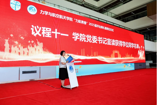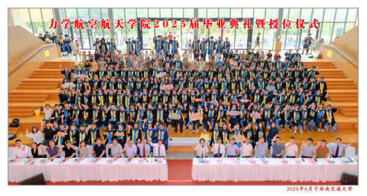 6月20日下午15:00,学院在犀浦校区3号教学楼中庭广场举行“力航青春”2025届毕业典礼暨授位仪式。学院党委书记栗民、院长李翔宇等全体院领导、学院学位评定分委会和教授委员会成员、系主任、班导师、学工组、院机关代表及2025届全体毕业生及家长代表参加了典礼,典礼由学院党委副书记孔祥彬主持。