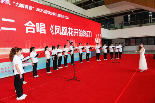 奏唱国歌之后,大家一起观看了2025届毕业生视频,学院苹果合唱团为毕业生送上了毕业礼物——合唱《凤凰花开的路口》。