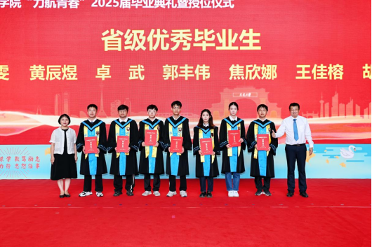 然后,学院栗民书记、李翔宇院长和高芳清、李鹏、鲁丽、张娟、杨洋、苗鸿臣老师分别为省级、校级优秀毕业生代表颁发获奖证书。