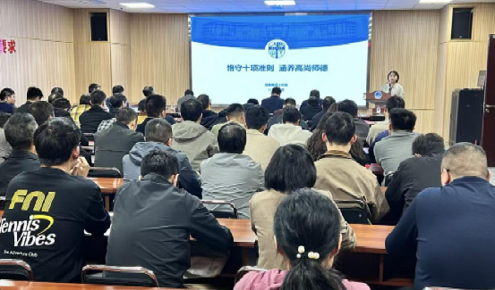 会议伊始,栗民书记以《恪守十项准则 涵养高尚师德》为题,为全体教职工开展了一场深刻的师德师风专题宣讲。他结合当前教育领域师德建设的新形势与新要求,从《新时代高校教师职业行为十项准则》的核心内涵出发,通过解读政策条文、剖析典型案例,强调了师德师风作为教师立身之本、从教之基的重要意义。她指出,全体教职工要将师德规范内化于心、外化于行,自觉肩负起为党育人、为国育才的神圣使命,以高尚的道德情操和扎实的学识素养,引领学生健康成长。