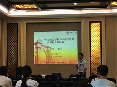 蒋晗教授,范晨光副教授及4名博士生参加了此次会议并作学术报告。其中,蒋晗教授介绍了3D打印制造高分子材料表面纹理对刮擦行为影响的最新研究进展;朱忠猛博士汇报了高延展弹性体与硬质基底粘接界面剪切破坏的研究成果;程前博士介绍了多功能刮擦实验设备研发与应用;代成栋博士报告了基于光学DIC的悬臂板结构的损伤识别。