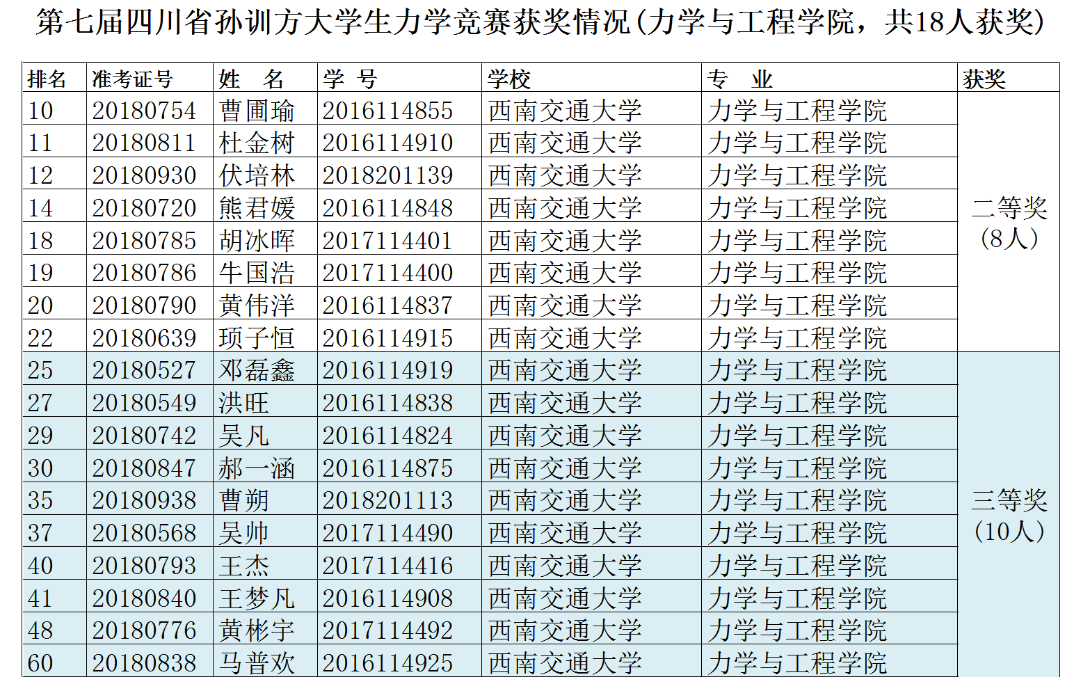 获得一等奖4项、二等奖20项、三等奖42项的好成绩。其中,力学与工程学院共获得二等奖8项、三等奖10项,与上一届相比有明显提升,但一等奖仍未突破。