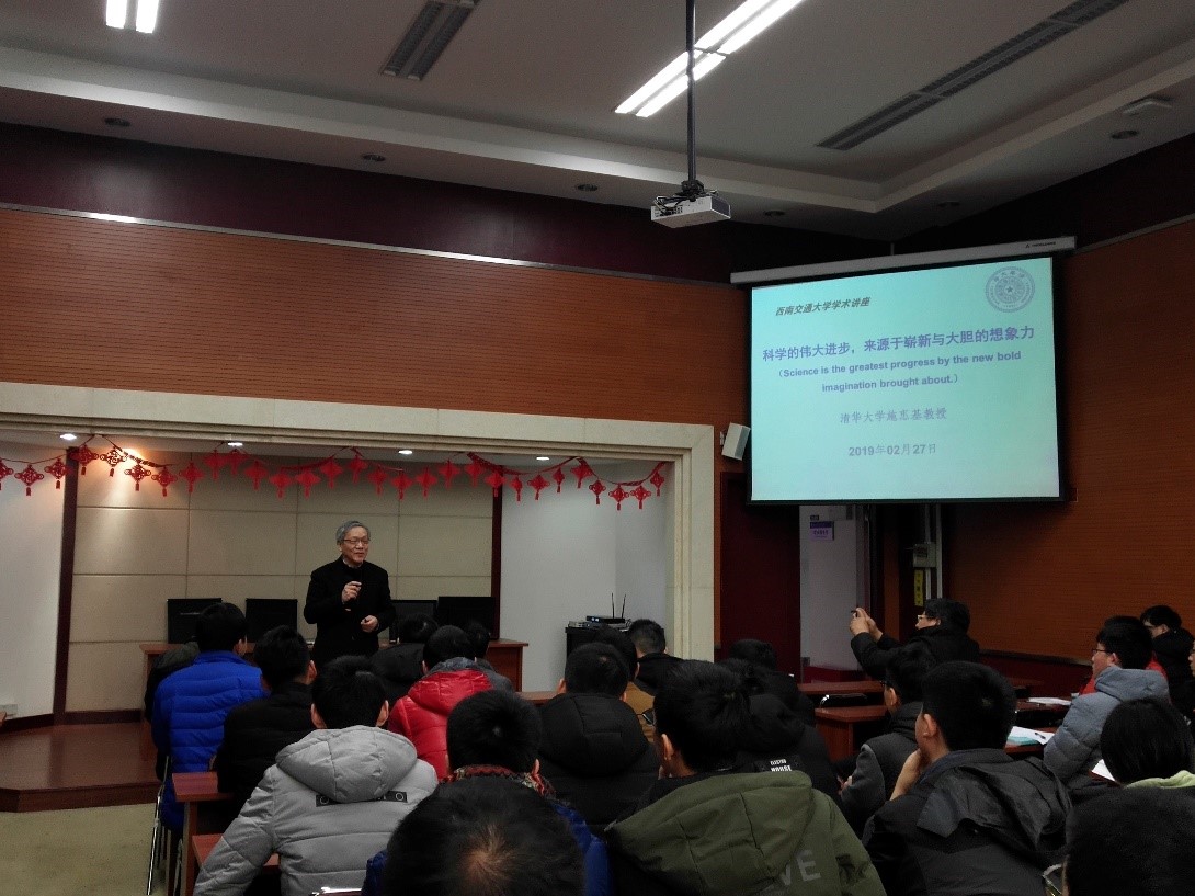 进行学术交流,并在九里行政楼240学术报告厅做学术讲座,讲座题目为:科学的伟大进步,来源于崭新与大胆的想象力。力学与工程学院领导、青年教师,以及学院研究生等50余人参加了本次学术报告。