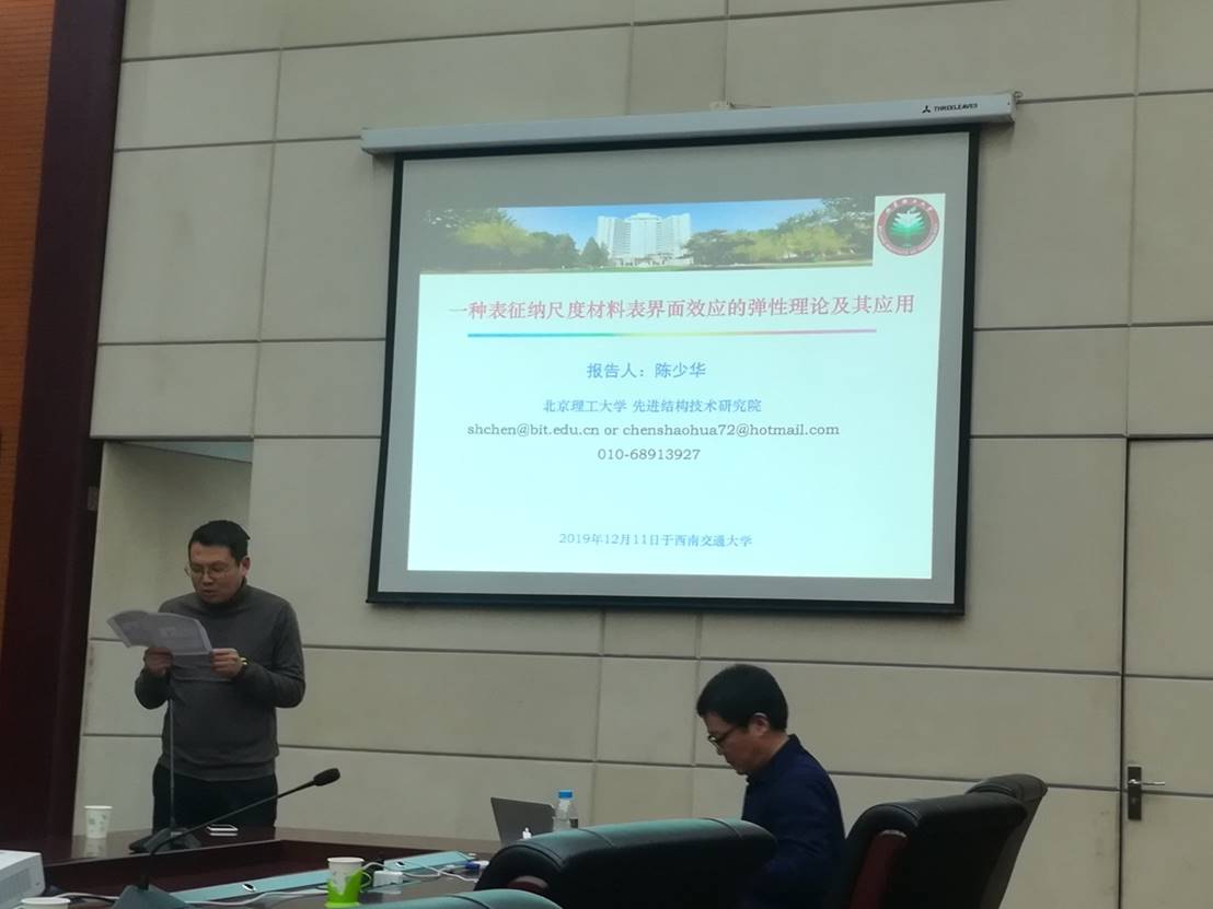 开展学术交流活动,陈少华教授作了关于“一种表征纳尺度材料表界面效应的弹性理论及其应用”的学术报告,参加学术交流的有包括麻豆做爱