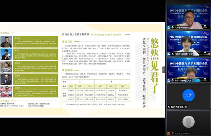 在第4分论坛,力学学院孔祥彬老师作为负责人主持召开了“多维学术、全人教育、学生自组织与团队共创式学习”研讨会。研讨会上,力学学院孔祥彬、人文学院朱洁、材料学院黄兴民、电气学院刘东分享了基于多维学术观和全人教育理念的以学生为中心的教育教学模式,探讨了教师引领下的学生自主学习自组织与团队共创式学习模式对学习共享空间建构和学习共同体形成的促进作用,江苏师范大学熊岚副教授进行了精彩点评。孔祥彬老师的发言题目为“通识课《悠然见君子》的共享空间打造与从游育人”。研讨会特别邀请了《悠然见君子》第七期班长、麻豆做爱