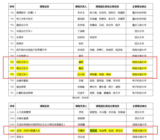 朱志武教授参与建设的《运动、科技与智慧人生》课程入选线下一流课程。