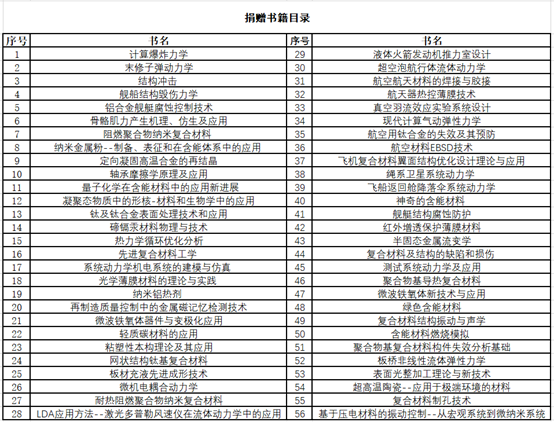 近日,空军工程大学程建教授向力学与工程学院捐赠了力学、航空航天等领域专业书籍56册。