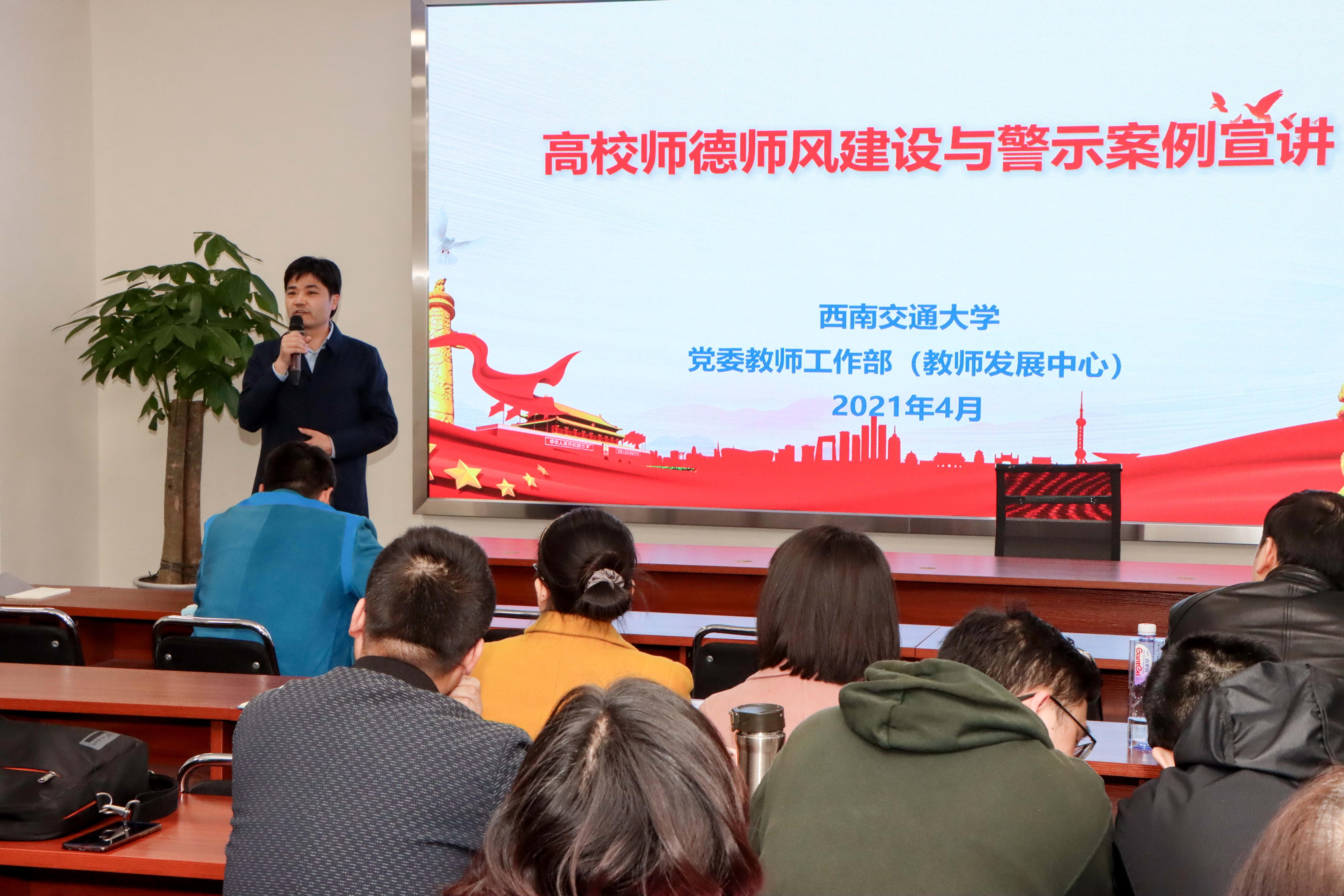 4月15日下午,在犀浦校区3号楼30224会议室,力学与工程学院开展了全院教职工党史学习教育工作会议。本次会议由学院党委书记栗民主持,学院全体领导及教职工参加了此次会议。学校党委教师工作部苏谦部长、李菁副部长、崔健科长在会议的第二阶段为全院教职工带来了一讲师德师风宣讲教育。