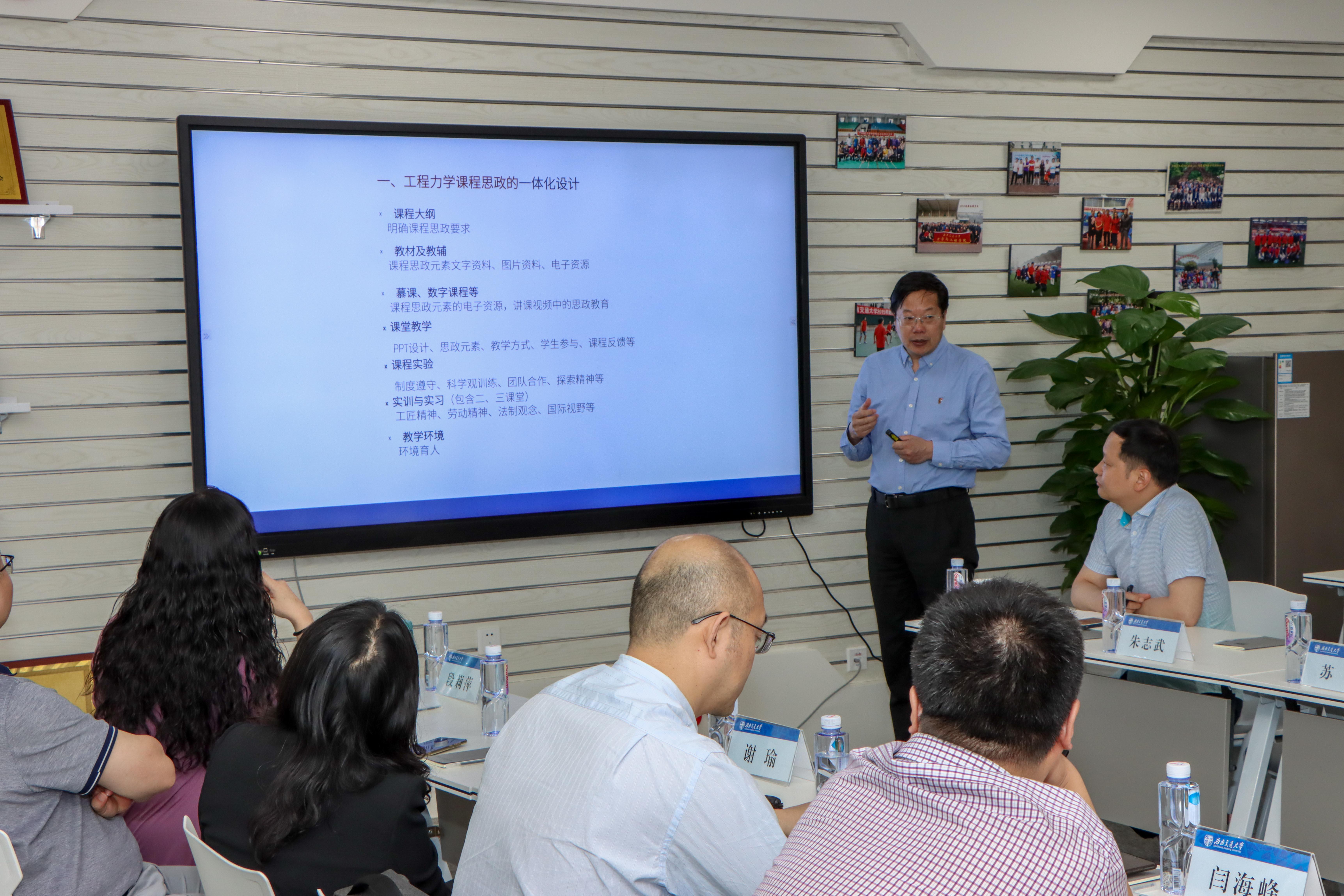 国家级一流课程《工程力学》的课程思政案例库建设的具体做法。他还介绍了北航、南航等高校的课程思政典型案例。