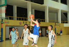 休息五分钟后,下半场拉开帷幕,率先由康国政老师三分命中。就在此时,毕业生队立马申请更换队员以防守手感火热的康国政老师。接下来几分钟时间里,毕业生队防守端和进攻端火力全开,王本纲、刘龙波、刘沣霄和郭秦羽也陆续投中,球场上下起了“三分雨”,一度将分差扩大到12分。在这千钧一发之际,老师队请求暂停,康老师做出了新的战术指导,回到球场的老师队打出了快速进攻的小高潮,朱志武老师连续快速进攻得到6分,老师队很快将比分反超。在最后一节中,双方队员都展示了不凡的实力,比分始终咬的很紧。最终,教师队以111:108赢得了比赛,双方球员给大家带来了一场精彩万分的篮球赛。