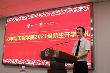 犀浦校区X30224举行开学典礼。校党委副书记沈火明、力学与工程学院院长康国政、特聘兼职教授闫子才、学院党委书记栗民、2021级班导师曾劲、王蕉、刘俊杰、王恋舟、唐介、2021级新生代表等出席本次学院开学典礼,2021级全体新生通过腾讯会议平台参加了本次开学典礼。典礼由学院党委副书记孔祥彬主持。