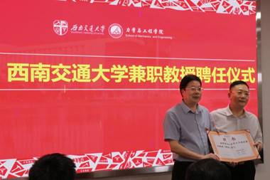 校党委副书记沈火明为兼职教授闫子才颁发聘书。