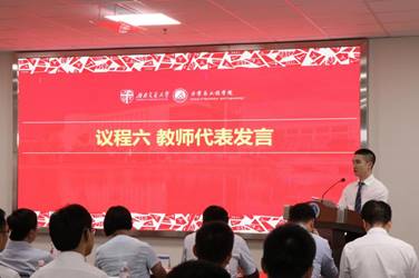 校友代表闫子才发言。他回顾了曾经度过的艰苦岁月,感慨自己在施工一线成长的经历,对母校的支持表示了由衷的感谢。同时闫子才校友也为新生们提出了几点建议,一、学习过程中要能吃苦,要敢于吃苦,要乐于吃苦,只有经历了苦的磨练,才能收获更高的成就;二、在未来的工作中要爱岗敬业,要干一行爱一行;三、要擅于借助平台力量实现个人突破,交大学子在借助西南交大这一平台创造更大的价值的同时也不要忘记感恩母校。