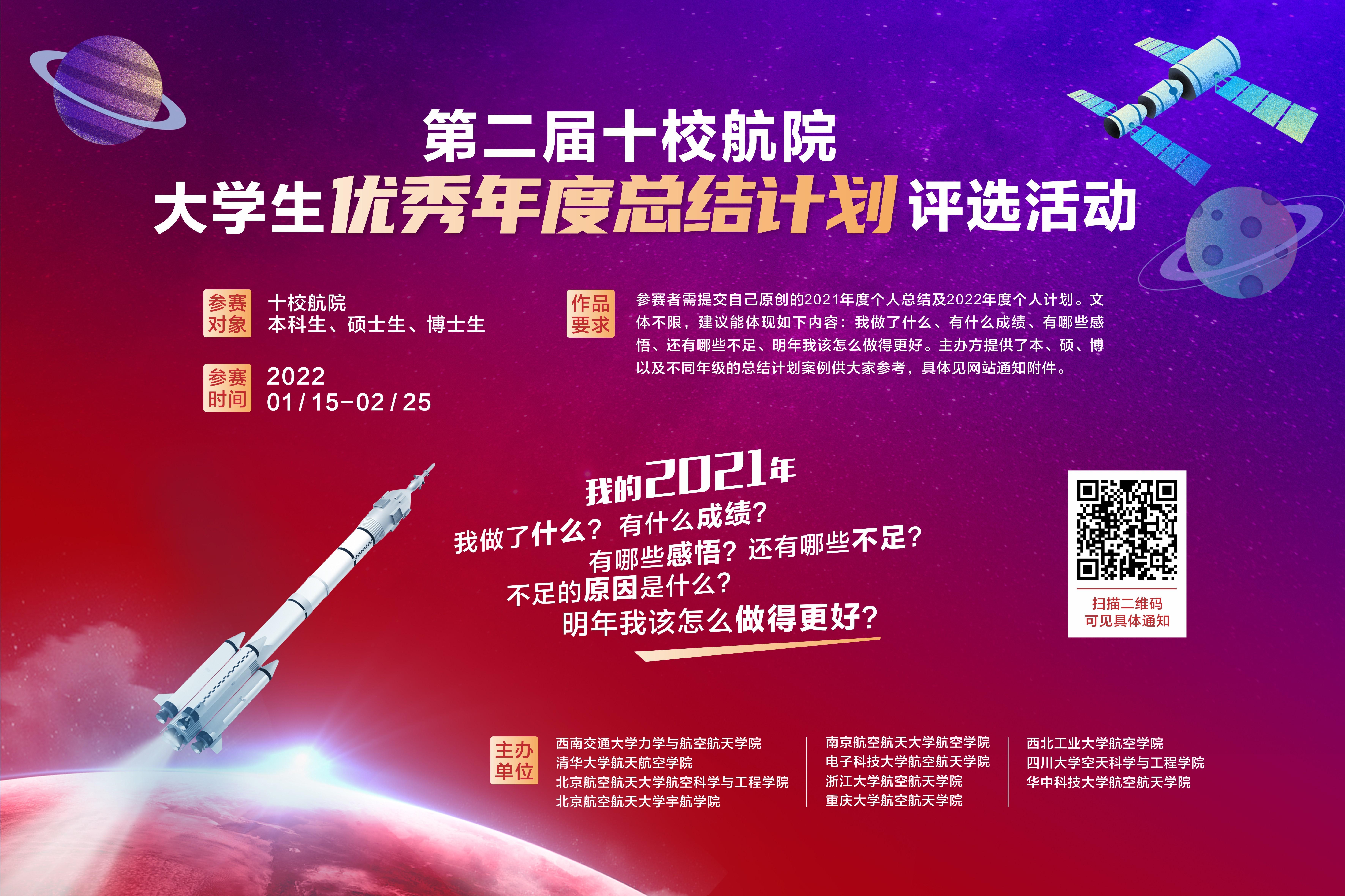 评选活动面向十校航院全体本科生、硕士生、博士生举行,参赛者需提交自己原创的年度个人总结及第二年计划,体现“我做了什么、有什么成绩、有哪些感悟、还有哪些不足、不足的原因是什么、明年我该怎么做得更好”的回顾和规划。主办方还提供了本、硕、博以及不同年级的总结计划案例供参赛者参考,并邀请了清华大学《写作与沟通》课程负责人梅赐琪、麻豆做爱