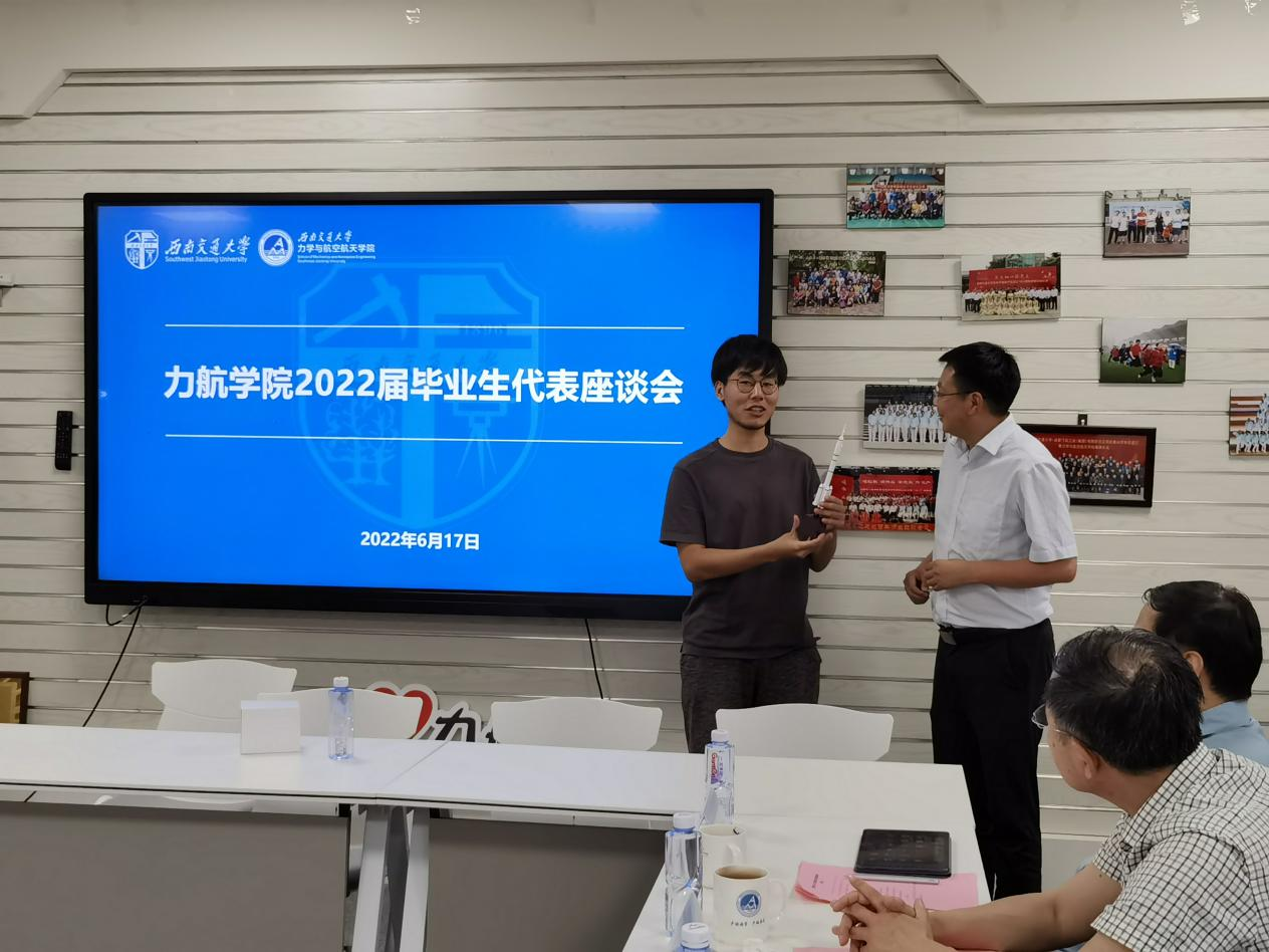2022届毕业生代表座谈会在X30278会议室举行。学校副校长康国政、学院党委书记栗民、执行院长李翔宇、副院长高芳清、副院长阚前华、学院党委副书记孔祥彬、学院团委书记杨婧、学院研究生辅导员张容华、学院毕业年级辅导员田甜老师以及学院2022届本、硕、博毕业生代表参加了座谈会,座谈会由学院党委副书记孔祥彬主持。