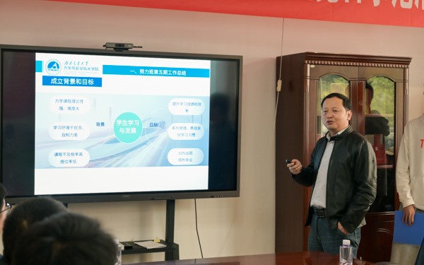 党委副书记孔祥彬介绍了第六期努力班规划。孔书记首先从往期的退学经历引入,结合自己和学生交流情况,从指导思想、组织架构、评选标准、保障措施这四个方面详细介绍了第六期努力班的规划。