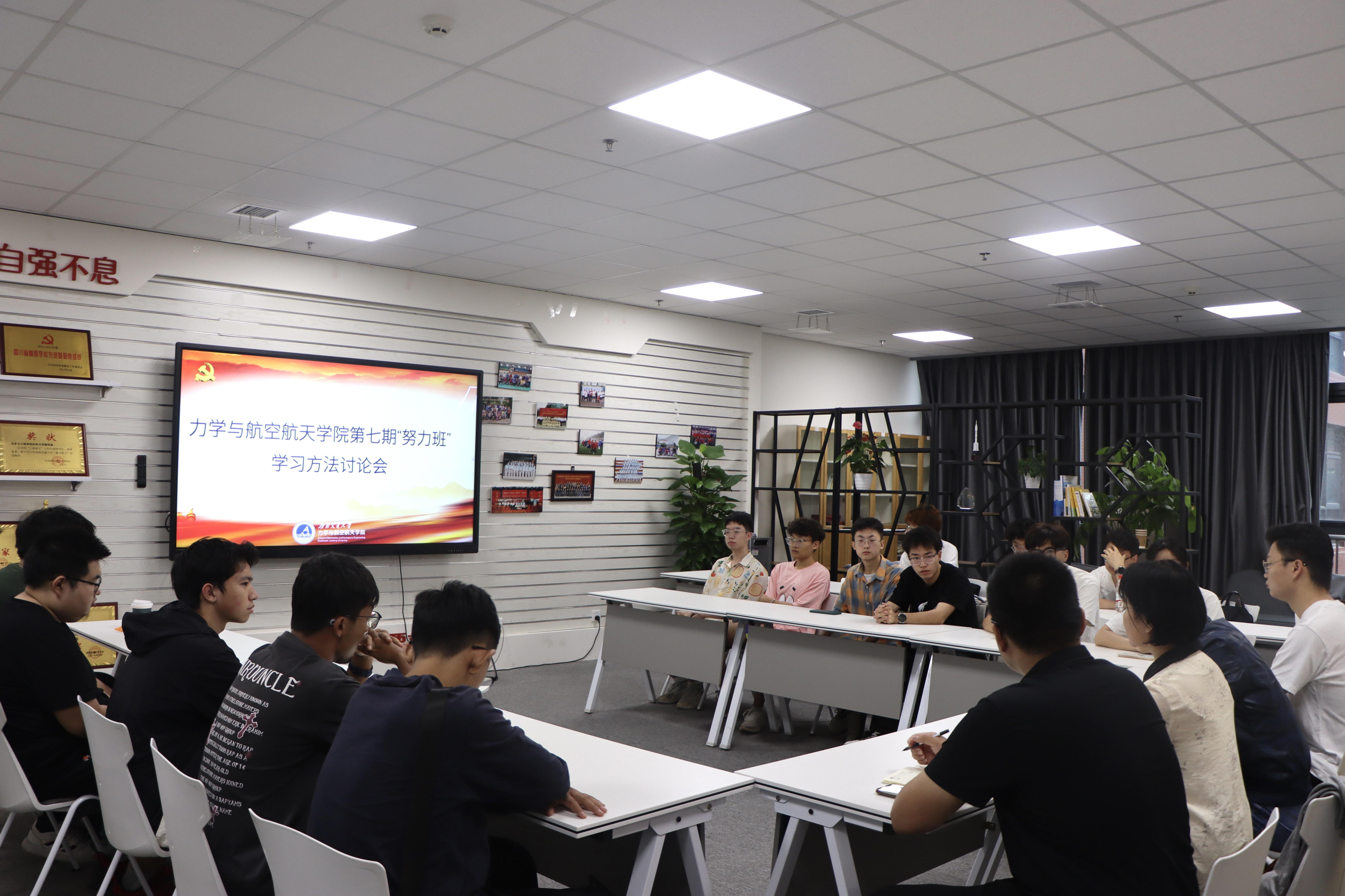 第七期学业帮扶“努力班”学习方法讨论会在X30278召开。学院党委书记栗民、党委副书记孔祥彬、辅导员王彪、本科生党支部党员代表、力航学霸宣讲团代表以及学业帮扶“努力班”的同学们共20余人参加了座谈。座谈会由学院党委副书记孔祥彬主持。