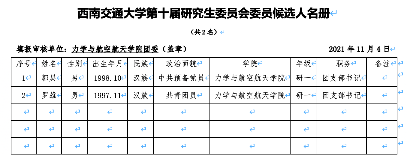 经班级(团支部)和学院研究生会推荐,现将拟推荐参加麻豆做爱 第十次研究生代表大会的代表名单与委员名单进行公示。如有异议,请于11月20日17:00前向学院团委反映,地点:X30279,电话:66366796。